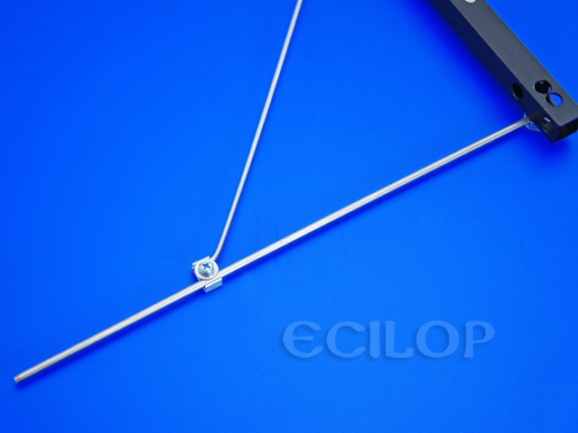 7. Pull the line through the holes in the arms. Balance the potentiometer arm. Tighten the line and secure the loose end with a drop of instant glue.
